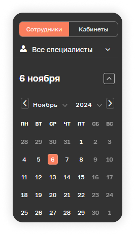 Отправка документов в ЕГИСЗ с отображением статуса, номера документа, истории действий (подписание, отправка, повторная отправка). Фильтрация по типу «Медосмотр».